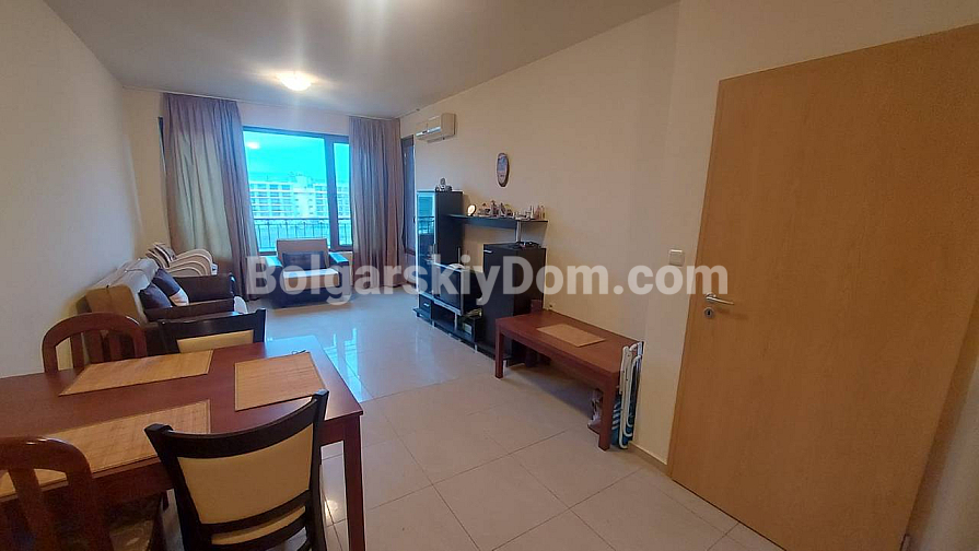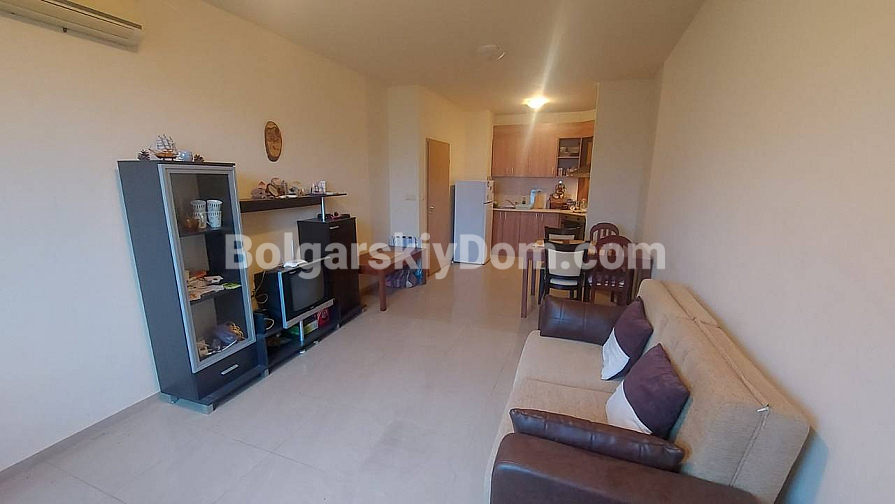 Szukasz nieruchomości, którą można szybko „dostosować” do siebie i uzyskać płynny aktyw? W północnej części Słonecznego Brzegu, w kompleksie Sun Flower, na sprzedaż wystawiono mieszkanie z jedną sypialnią o powierzchni 63 m². Mieszkanie znajduje się na piątym, ostatnim piętrze, co gwarantuje brak sąsiadów z góry i doskonałe nasłonecznienie. Czysta powierzchnia 56 m² wydaje się znacznie większa dzięki przemyślanemu układowi: duży jasny salon i pełnowymiarowa sypialnia. Mieszkanie długo nie było zamieszkane, więc wymaga lekkich prac kosmetycznych — świetna okazja, aby odświeżyć wnętrze według własnego gustu, nie przepłacając za cudze rozwiązania projektowe.
