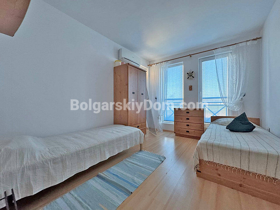 Doskonała nowość w równie atrakcyjnym budżecie. Bolgarskiy Dom prezentuje propozycję dla osób poszukujących pełnowartościowego mieszkania rodzinnego w cenie kawalerki. To trzypokojowe mieszkanie z dwiema sypialniami o powierzchni 70 m² znajduje się w kompleksie Sunny Day 6 — miejscu cenionym za ciszę oraz rozbudowaną infrastrukturę wewnętrzną. Lokal usytuowany jest na parterze, co zapewnia szybki dostęp do terenów spacerowych bez konieczności korzystania ze schodów. Układ mieszkania jest wyjątkowo funkcjonalny: salon został logicznie podzielony na część kuchenną i strefę wypoczynku, a dwie oddzielne sypialnie pozwalają na komfortowe zamieszkanie większej rodziny. Dwa tarasy wychodzą na zadbany teren kompleksu, tworząc klimat domu pod miastem.