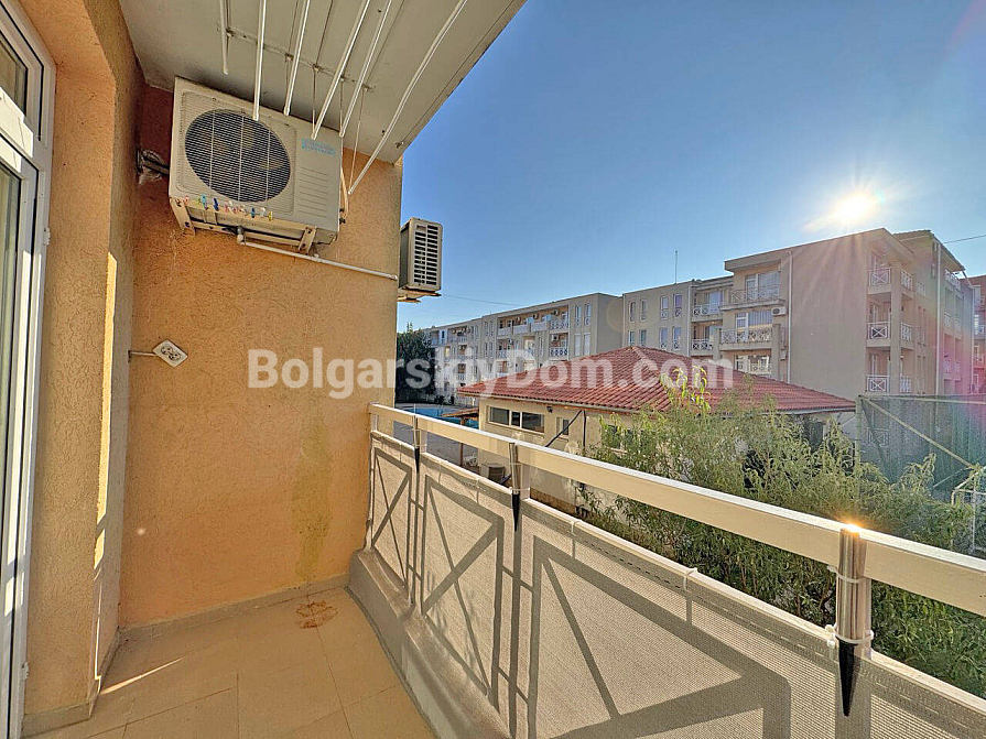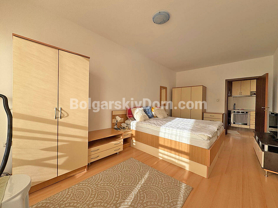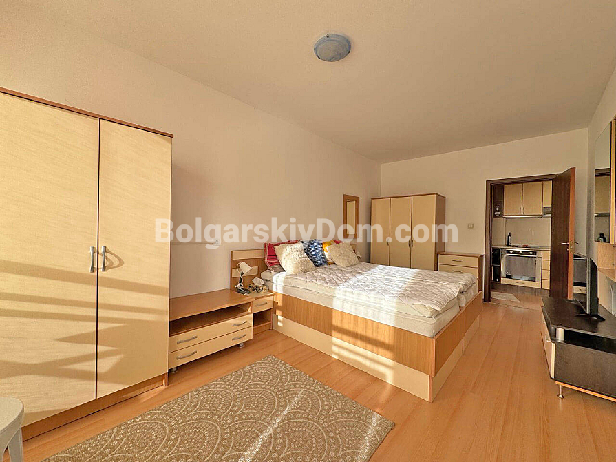 Poznaj nową ofertę w budżecie z ubiegłego roku. Zespół Bolgarskiy Dom z przyjemnością prezentuje kompaktowe i funkcjonalne mieszkanie dwupokojowe w kompleksie Sunny Day 6 — osiedlu, które słusznie uznawane jest za samodzielną dzielnicę z własnym klimatem. Apartament o powierzchni 49 m² znajduje się na drugim piętrze i posiada klasyczny układ: niewielki przedpokój, salon z aneksem kuchennym, oddzielną jasną sypialnię oraz balkon z widokiem na wewnętrzny teren kompleksu. Mieszkanie jest w pełni umeblowane i wyposażone w sprzęt AGD, a dzięki taryfom gospodarstw domowych na prąd i wodę koszty utrzymania są wyjątkowo niskie.