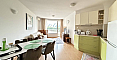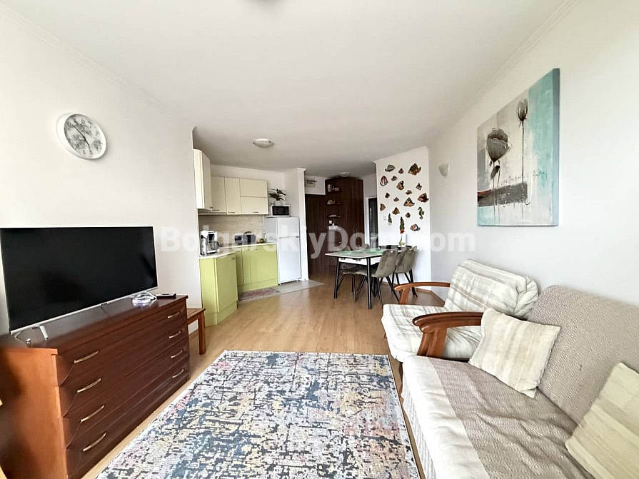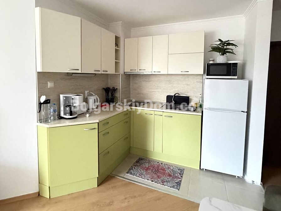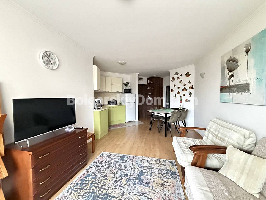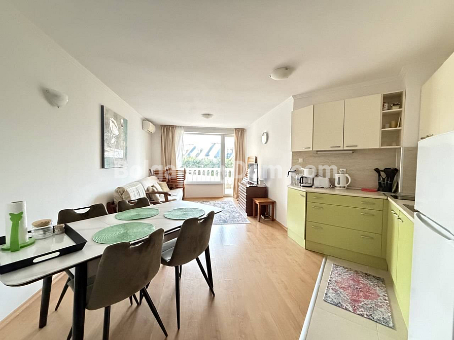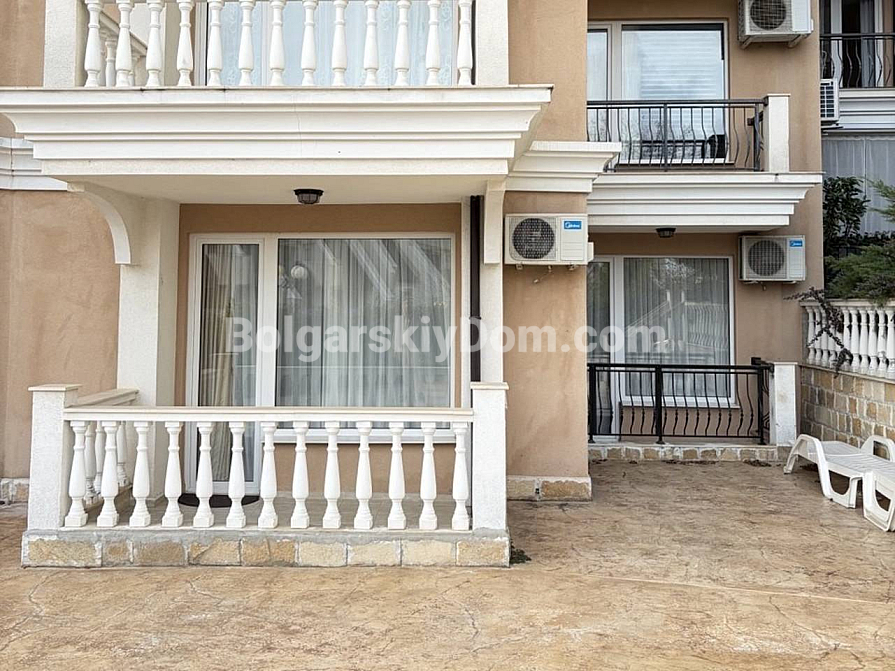 Luksusowe nieruchomości od Bolgarskiy Dom. Jeśli szukasz równowagi między prywatnością a usługami klasy premium, zwróć uwagę na tę ofertę w Villa Antorini. Mieszkanie o powierzchni 65 m² znajduje się na drugim piętrze i jest idealne dla osób ceniących komfort oraz przytulność: z okien rozciąga się widok na zadbany wewnętrzny ogród, który daje poczucie prywatnej zielonej oazy. Układ obejmuje przestronny salon, oddzielną sypialnię oraz dwie tarasy, co pozwala na funkcjonalne zagospodarowanie stref wypoczynku na świeżym powietrzu. Do morza jest zaledwie 200 metrów, a do znanej mariny jachtowej Marina Dinevi można dojść spacerem w około 15 minut.