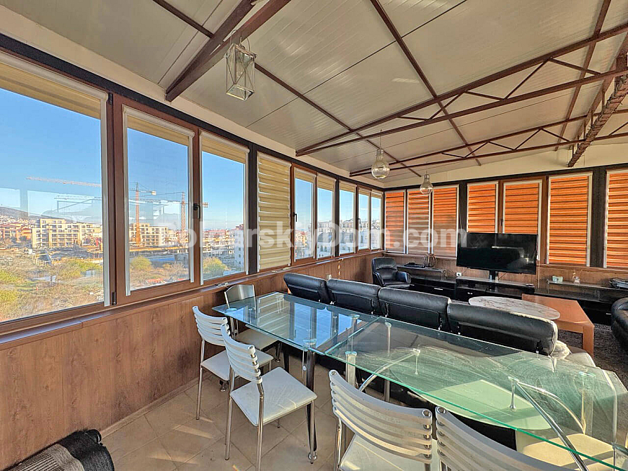 Od Bolgarskiy Dom — nowość z efektem „wow”! Gdy mówimy o dwupokojowym apartamencie o powierzchni 148 m², od razu staje się jasne, że nie jest to oferta oparta na standardowych układach, lecz na prawdziwej przestrzeni. Taki metraż jest niemal dwa i pół razy większy od średniego dla tego typu nieruchomości, co daje wyjątkowe poczucie swobody. Apartament zajmuje całe szóste piętro kompleksu Antonia, co oznacza brak sąsiadów nad głową, panoramiczne widoki na góry oraz imponujący taras, który można zaaranżować jako prywatny ogród lub strefę lounge na świeżym powietrzu.