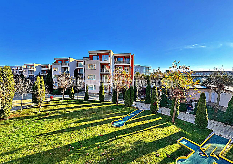 Kompleks Nessebar Fort Golf Club w zachodniej części Słonecznego Brzegu od dawna jest wzorcem wysokiej jakości zarządzania i bogatej infrastruktury. Jest tu wszystko: profesjonalne pola golfowe, kilka basenów, restauracje, siłownia, a nawet gabinet lekarski na terenie obiektu. Lokalizacja doskonała dla aktywnego życia — do centrum kurortu tylko 450 metrów, w pobliżu duży park wodny i supermarkety, spacer na plażę zajmuje około 10–15 minut. Budynek posiada Akt 16, a rachunki za prąd i wodę rozliczane są według standardowych taryf.