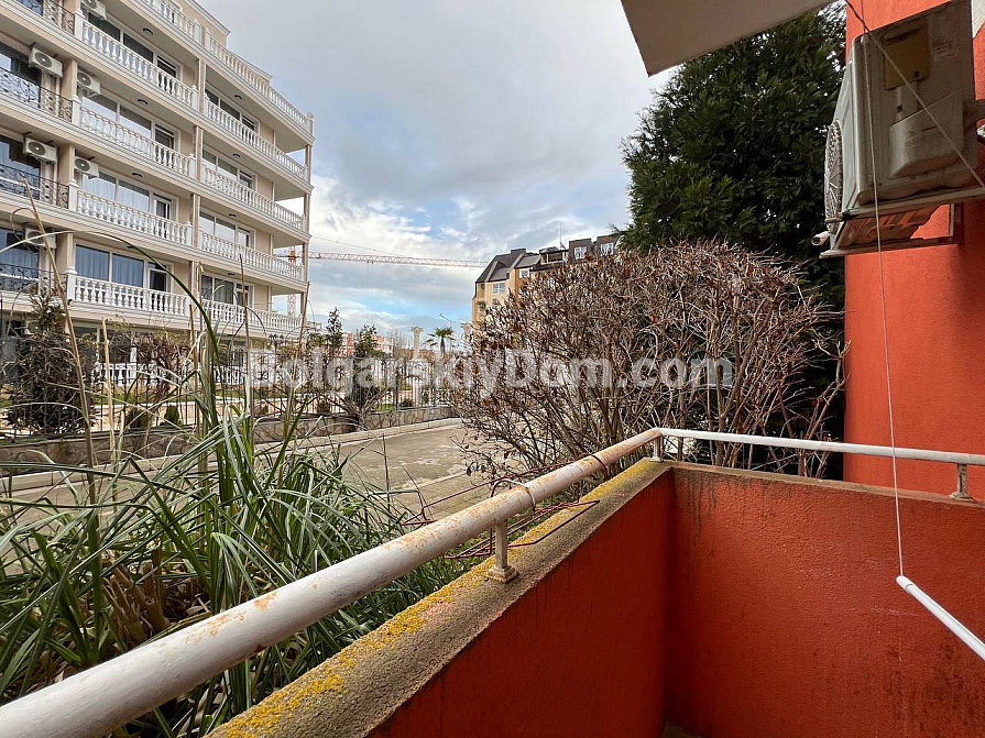 Projekt zlokalizowany jest w zachodniej części Słonecznego Brzegu — dzielnicy cenionej przez mieszkańców za dobrą infrastrukturę i bliskość terenów zielonych. Do piaszczystych wydm można dojść spokojnym spacerem w około dziesięć minut, pokonując zaledwie 400 metrów. Teren kompleksu jest ogrodzony i chroniony, na dziedzińcu znajduje się basen z leżakami oraz plac zabaw dla dzieci. Budynek został wybudowany w 2010 roku, posiada Akt 16, a opłata eksploatacyjna wynosi 10 euro za metr kwadratowy, co czyni utrzymanie nieruchomości przyjaznym dla domowego budżetu.