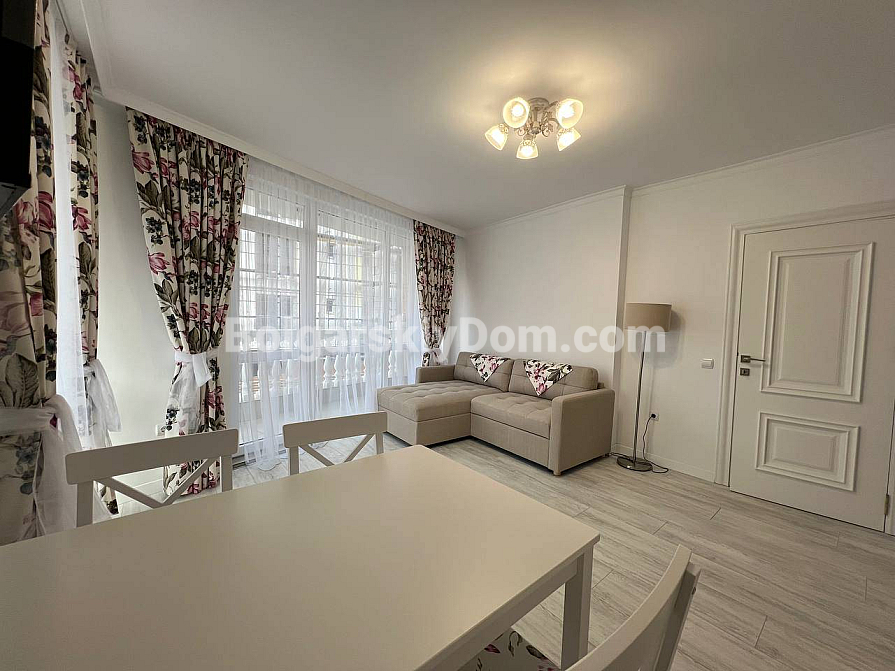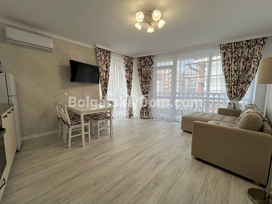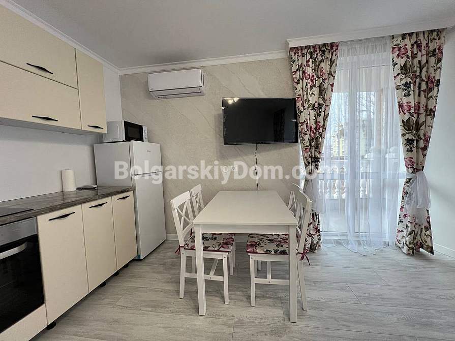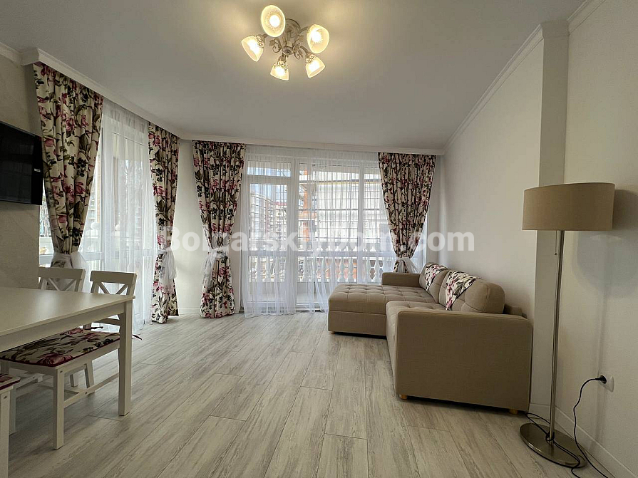 Słoneczny Brzeg — topowy kurort i doskonała lokalizacja! Zespół Bolgarskiy Dom prezentuje przestronny dwupokojowy apartament o powierzchni 70 m², położony w kompleksie mieszkaniowym Magnolia 7. Apartament znajduje się na drugim piętrze i oferowany jest w pełni umeblowany — wykonano nowoczesny remont w stonowanej kolorystyce. Układ pomieszczeń obejmuje jasny salon z kuchnią i częścią jadalnianą, który płynnie przechodzi w strefę wypoczynkową, oraz oddzielną sypialnię z dużym łóżkiem. Nieruchomość jest wyposażona we wszystkie niezbędne sprzęty AGD, w tym klimatyzację i pralkę w nowoczesnej łazience z prysznicem. Z pomieszczeń prowadzi wyjście na balkon, który można zaaranżować jako dodatkowe, przytulne miejsce na poranną kawę na świeżym powietrzu. Chcesz umówić się na osobistą prezentację lub spotkanie online? Napisz do nas!