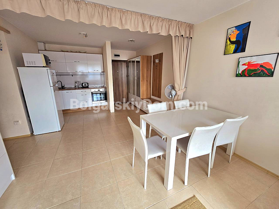 W bazie ofert Bolgarskiy Dom w miejscowości Rawda pojawił się przestronny apartament o powierzchni 75 m², położony w nowoczesnym projekcie mieszkaniowym Lifestyle 3. Mieszkanie znajduje się na czwartym piętrze sześciopiętrowego budynku wyposażonego w windę, co zapewnia wygodny dostęp. Wnętrze obejmuje duży salon z aneksem kuchennym oraz przytulną sypialnię. Główną zaletą układu jest przestronny taras z przyjemnym widokiem na wewnętrzny teren z basenem. Nieruchomość przekazywana jest nowym właścicielom w doskonałym stanie, w pełni umeblowana i wyposażona w sprzęt AGD, co eliminuje dodatkowe trudności przy wprowadzaniu się.