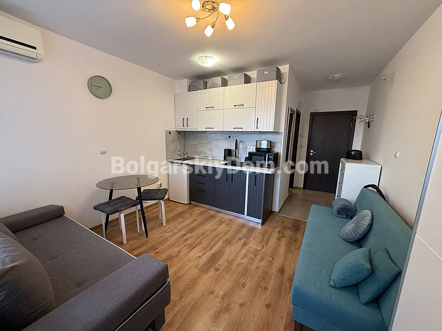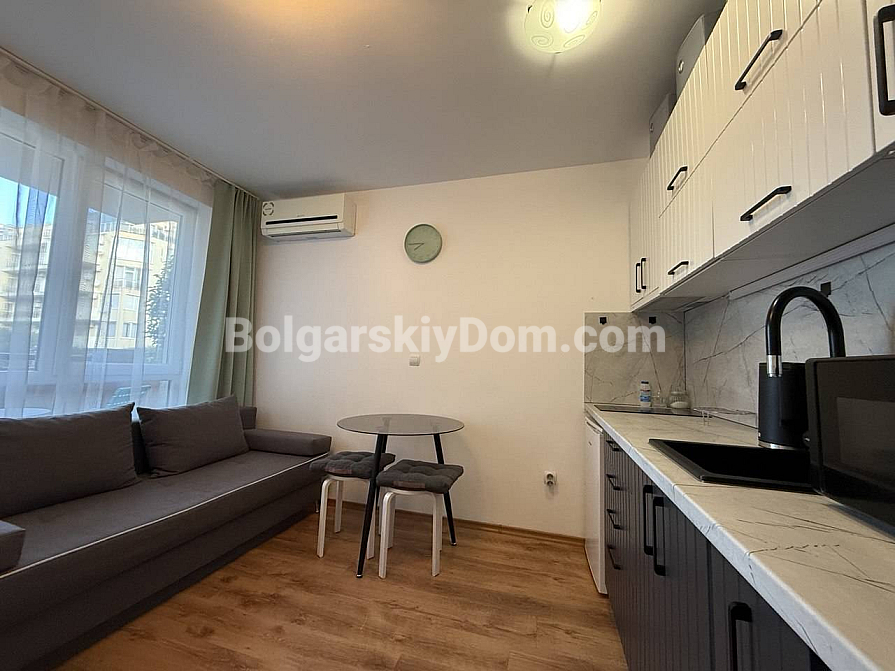 Od Bolgarskiy Dom — nowa oferta w samym centrum najpopularniejszego kurortu, Słonecznego Brzegu! To studio w kompleksie Casa Rosa oferowane jest w pełni w stanie pod klucz, co pozwala uniknąć wszelkich trosk związanych z urządzaniem. Powierzchnia 32 m² została zaplanowana w taki sposób, aby znalazło się miejsce na pełnowartościowy aneks kuchenny, strefę wypoczynku oraz przechowywania. Apartament znajduje się na parterze; wszystkie meble i sprzęt AGD są wliczone w cenę, a bardzo dobry stan techniczny umożliwia wprowadzenie się od razu po podpisaniu dokumentów.