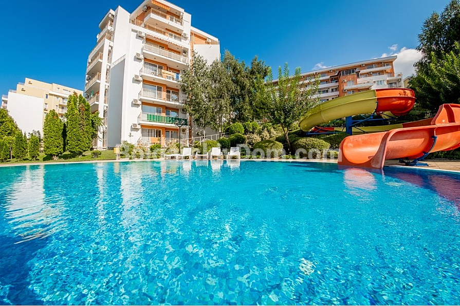 Kompleks Crown Fort położony jest w wyjątkowej lokalizacji pomiędzy kurortami Święty Włas i Elenite, gdzie zbocza pasma górskiego Stara Planina dochodzą bardzo blisko morza. Miejsce to znane jest wśród inwestorów i turystów z czystości oraz spokoju, a do plaży jest zaledwie 400 metrów zadbanymi alejkami. Teren kompleksu to prawdziwe miasto w mieście: 17 basenów, korty tenisowe, kilka supermarketów, restauracje oraz place zabaw dla dzieci na każdy gust. Bezpieczeństwo zapewnia całodobowa ochrona i system kontroli dostępu, a profesjonalna firma zarządzająca dba o części wspólne za roczną opłatą 14,50 euro za metr kwadratowy. Lokalizacja i poziom obsługi gwarantują stałe zainteresowanie najemców, jeśli traktujesz nieruchomość jako inwestycję. Chcesz zobaczyć apartament na żywo lub podczas prezentacji wideo? Czekamy na Twój telefon!