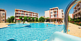 Holiday Fort Noks oferuje mieszkańcom pełną infrastrukturę miejską na zamkniętym i chronionym terenie. Na miejscu znajduje się wszystko, czego potrzeba: kilka basenów, restauracje, sklepy spożywcze oraz nowoczesne place zabaw dla dzieci. Teren kompleksu otoczony jest zielenią parkową, co stwarza doskonałe warunki do spacerów z dala od głośnych tras turystycznych. Nieruchomość posiada Akt 16 i nadaje się do całorocznego zamieszkania, a dla właścicieli przewidziano wygodny parking. Roczna opłata eksploatacyjna wynosi 14 euro za metr kwadratowy i obejmuje utrzymanie całego rozległego terenu.
