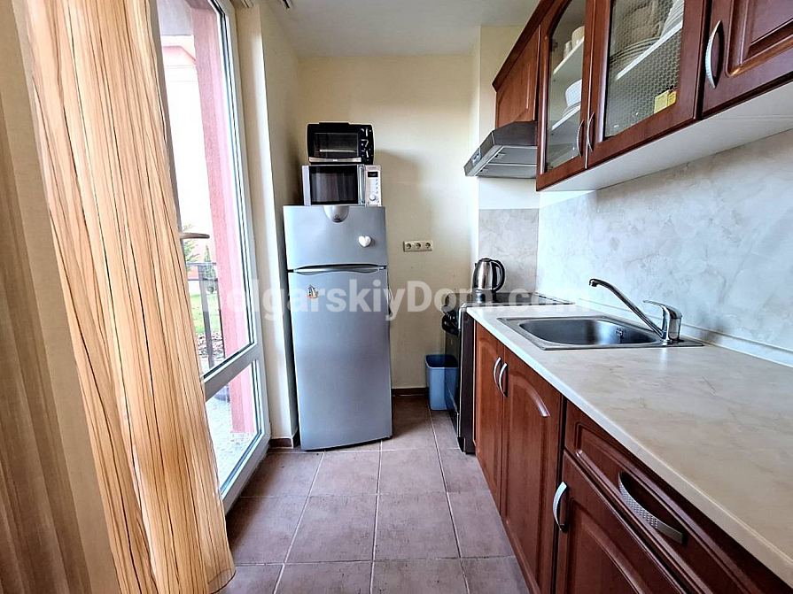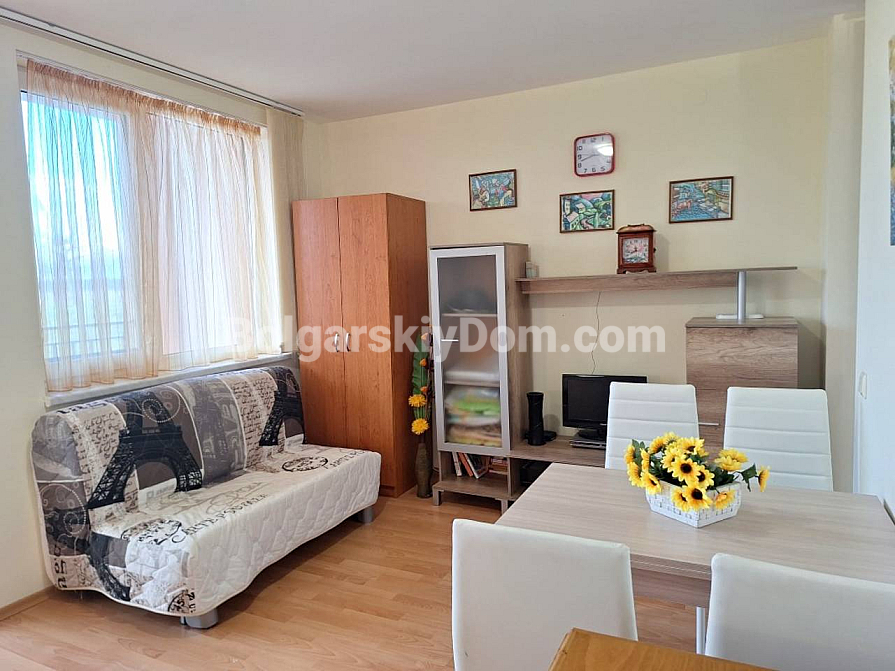 W portfolio Bolgarskiy Dom pojawiła się przestronna nowość dla osób planujących przeprowadzkę lub komfortowy wypoczynek w Słonecznym Brzegu. W kompleksie Holiday Fort Noks na sprzedaż oferowane jest studio o imponującej powierzchni 46 m². Niestandardowy układ pozwolił na wygodne zagospodarowanie przestrzeni: strefa sypialna, część wypoczynkowa z sofą oraz pełnowartościowy aneks kuchenny w osobnej wnęce. Apartament znajduje się na wysokim parterze, a okna wychodzą na spokojną strefę parkową. Meble i kuchnia wykonane są z litego drewna, co podkreśla solidność i przytulny charakter wnętrza. Dwa tarasy oraz pełny zestaw sprzętu AGD, w tym pralka i duża lodówka, umożliwiają wprowadzenie się od razu po transakcji. Chcesz dowiedzieć się więcej o tej ofercie lub umówić się na prezentację online? Czekamy na Twój telefon!