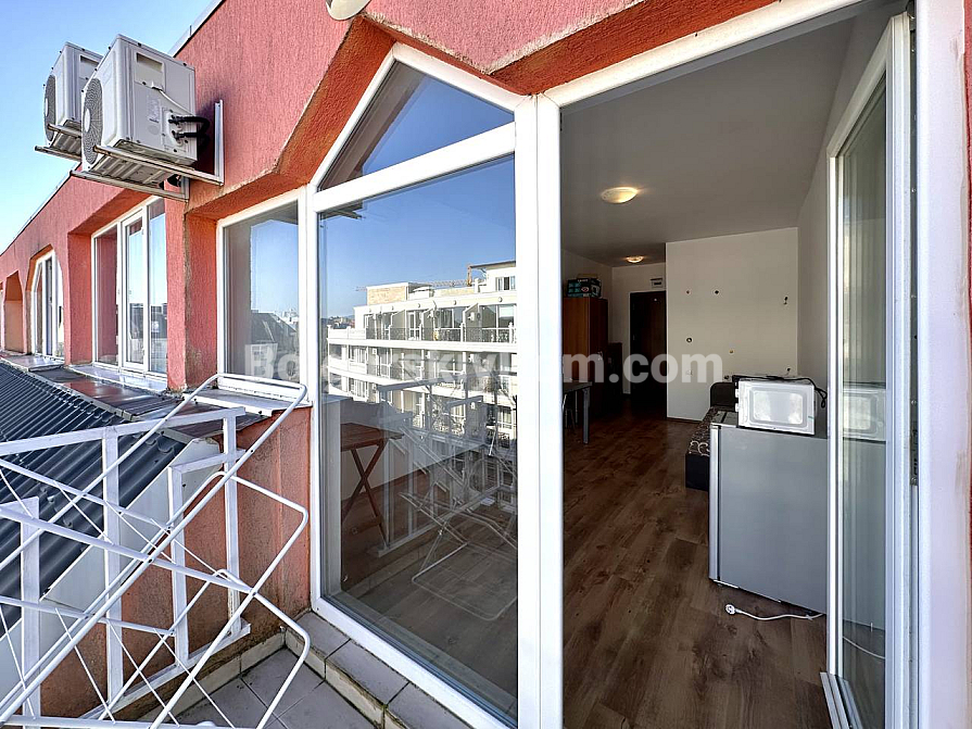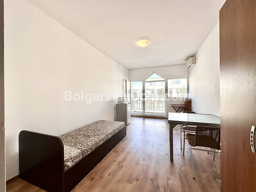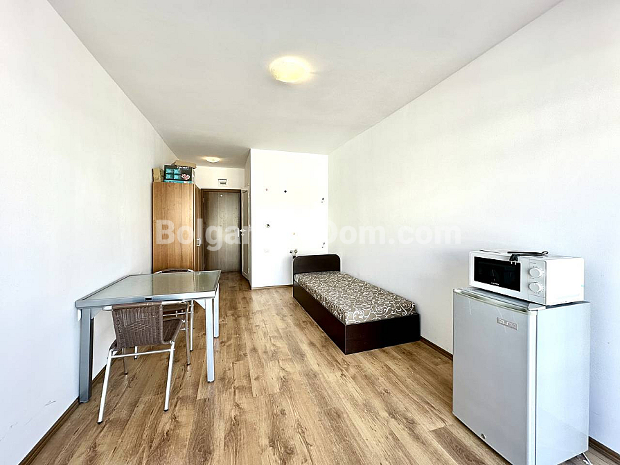 Teren kompleksu jest zamknięty i chroniony przez całą dobę. Zapewniono tu warunki do komfortowego wypoczynku: basen, plac zabaw dla dzieci oraz strefę barbecue. Budynek posiada Akt 16 i jest wyposażony w nowoczesną windę. Roczna opłata eksploatacyjna wynosi tylko 290 euro. Taka kwota czyni tę nieruchomość ekonomicznym aktywem przy wysokiej jakości obsługi i zadbanych terenach zielonych. Lokalizacja w zachodniej części Słonecznego Brzegu jest spokojna, bez hałasu komunikacyjnego. W pobliżu znajdują się supermarkety, kawiarnie oraz aquapark. Zapewniamy pełną obsługę prawną transakcji. Chcesz otrzymać szczegółowy wideoprezentację tego apartamentu już teraz? Czekamy na Twój telefon!