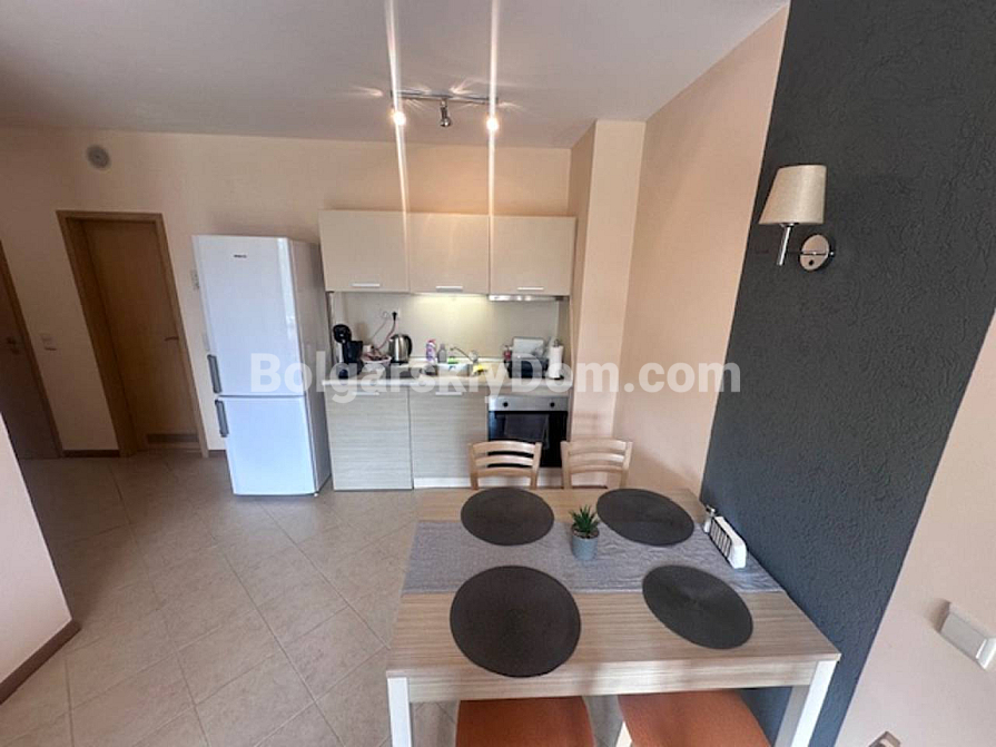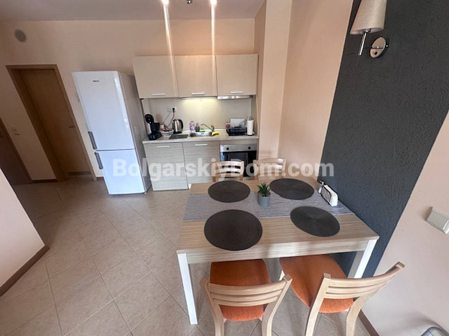 Nowość w Royal Sun – przestronne dwupokojowe mieszkanie o powierzchni 67 m² w samym sercu Słonecznego Brzegu. Nieruchomość znajduje się na trzecim piętrze z widokiem na wewnętrzny teren kompleksu. Mieszkanie jest rozsądnie wyposażone w meble i sprzęt AGD, dzięki czemu można od razu się wprowadzić lub rozpocząć wynajem. Układ obejmuje jasny salon z aneksem kuchennym, przytulną sypialnię oraz gotową do użytku łazienkę z – co jest istotnym atutem – wanną. Zainstalowany bojler zapewnia 100% gotowości do zamieszkania!