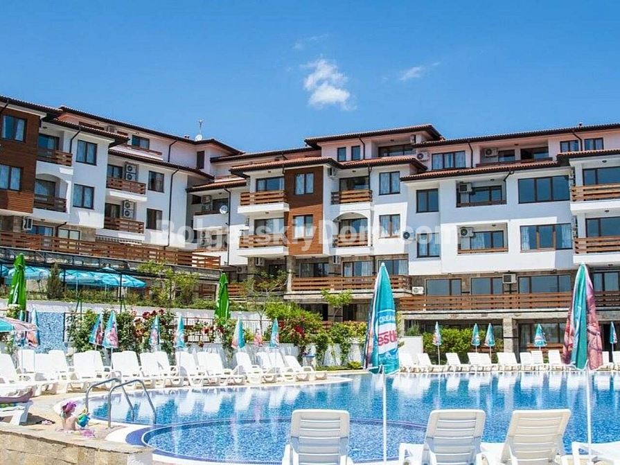 Gardenia Hills to kompaktowy kompleks w bułgarskim stylu architektonicznym: dachówki, kamienne akcenty i dużo zieleni na dziedzińcu. Kompleks jest otwarty przez cały rok i posiada basen, restaurację, kącik dla dzieci, miejsca do grillowania, parkingi i całodobową ochronę. Mieszkanie znajduje się w spokojnej okolicy na obrzeżach Słonecznego Brzegu – nie słychać tu zgiełku kurortu, sklep Lidl znajduje się zaledwie kilka minut drogi stąd, a centrum i plaża oddalone są o około 2 km samochodem lub rowerem. Dobry wybór zarówno na sezonowe wakacje, jak i na stały pobyt.