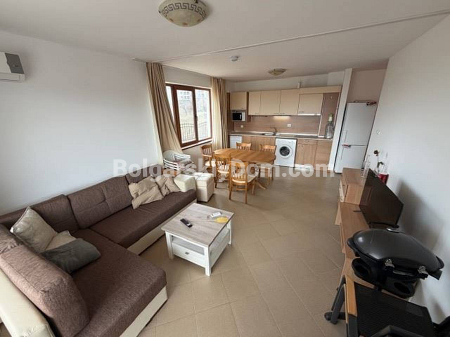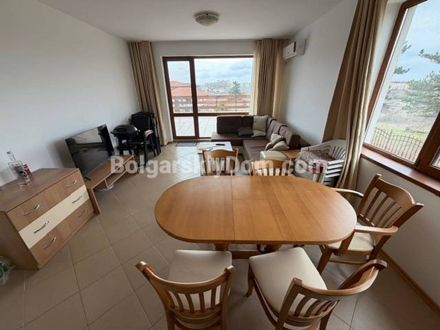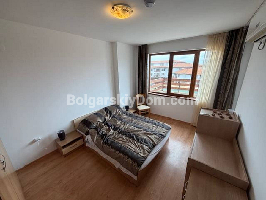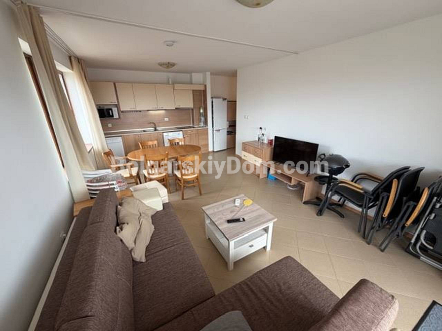 Agencja nieruchomości Bolgarskiy Dom dodała do swojej oferty trzypokojowe mieszkanie w kompleksie Gardenia Hills w Słonecznym Brzegu – 97 m², dwie sypialnie, duży taras z dostępem z obu sypialni, widok na basen i miasto. Mieszkanie jest w pełni umeblowane i wyposażone: salon z jadalnią, sypialnie z łóżkami, szafami i tekstyliami, kuchnia z urządzeniami elektrycznymi oraz łazienka. Na tarasie jest wystarczająco dużo miejsca na część wypoczynkową, stół jadalny i dodatkowe sprzęty gospodarstwa domowego. Opłata za utrzymanie wynosi 9 € za m² rocznie. Napisz do nas – zorganizujemy wizytę!