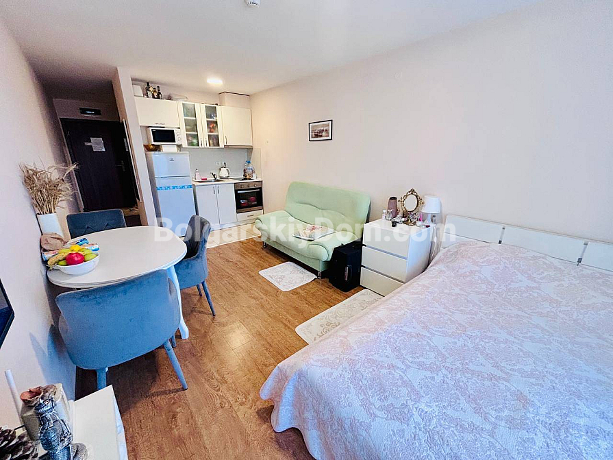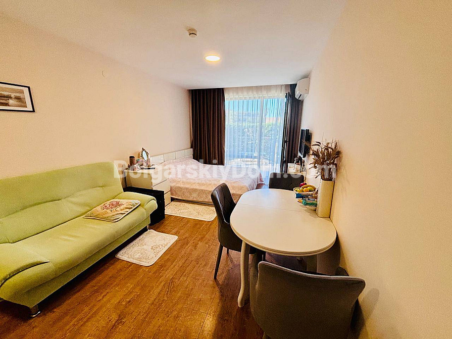 Studio z widokiem na morze w Świętym Własie – nowość w katalogu agencji Bolgarskiy Dom! 45 m² na trzecim piętrze w kompleksie Premier Fort Beach, balkon z panoramicznym widokiem na morze, winda oraz miejsce parkingowe. Mieszkanie jest w pełni umeblowane i wyposażone: sofa, łóżko, część jadalniana ze stołem i krzesłami, telewizor, klimatyzacja, parkiet w dobrym stanie. Wszystko gotowe – możesz wprowadzić się samodzielnie lub rozpocząć wynajem już w tym sezonie. Święty Włas, dzięki stabilnemu popytowi najmu, pozwala szybko odzyskać zainwestowane środki.
