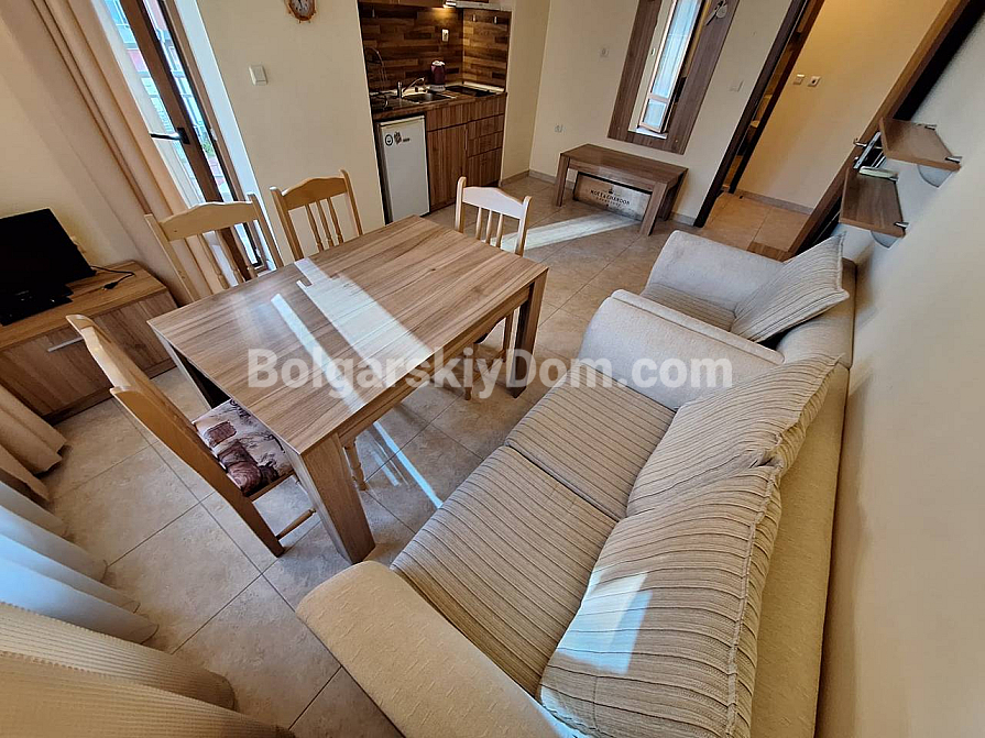 Przytulny apartament zaledwie 300 metrów od słynnej plaży Cacao Beach — pod klucz i w jednym z najspokojniejszych zakątków Słonecznego Brzegu! Oferujemy świetną nieruchomość od Bolgarskiy Dom w kompleksie Sea Regal. Apartament o powierzchni 53 m² znajduje się na trzecim piętrze i łączy przemyślany układ, nowoczesne wykończenie oraz pełną gotowość do zamieszkania. Z balkonu roztacza się widok na zadbany zielony teren kompleksu — idealne miejsce na poranną kawę w ciszy, z dala od zgiełku dużych kurortów. Układ: oddzielna sypialnia oraz jasny salon z aneksem kuchennym. Mieszkanie jest w pełni umeblowane i wyposażone — wystarczy przyjechać i zamieszkać.