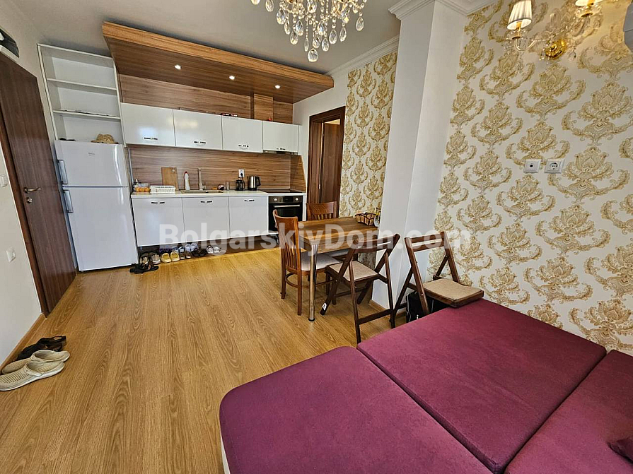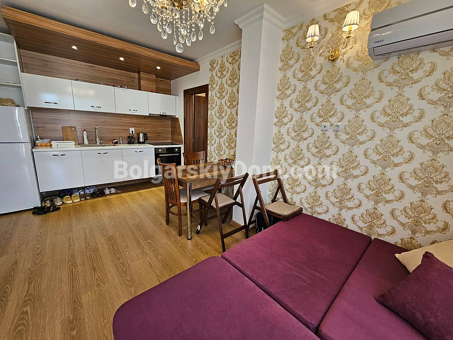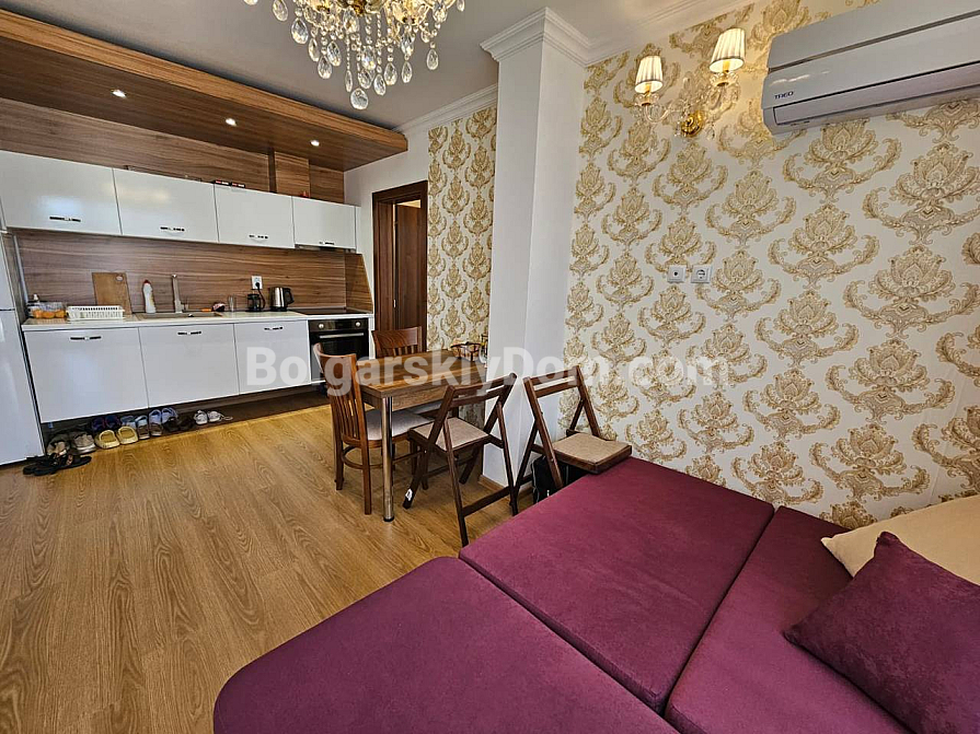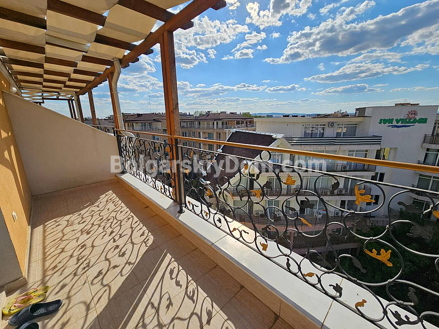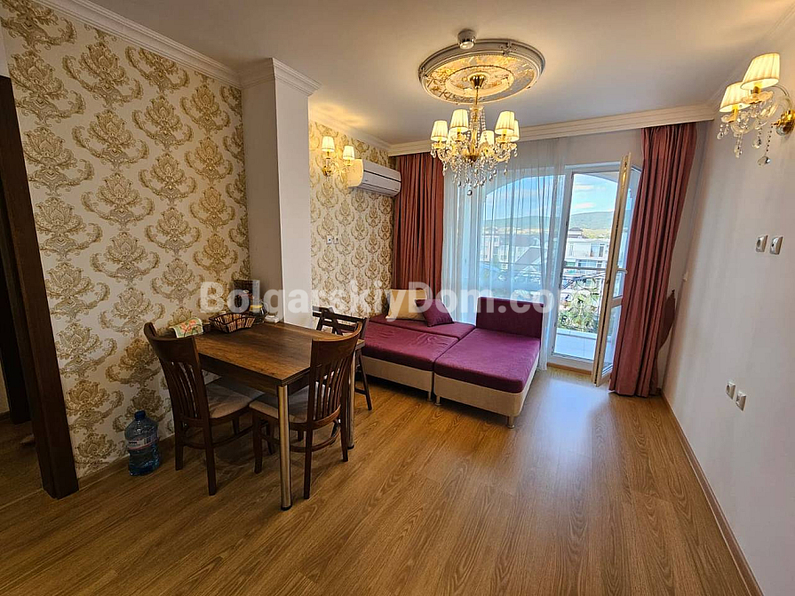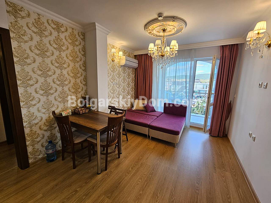 Uwaga — płynne uzupełnienie katalogu w segmencie nieruchomości premium z rynku wtórnego! Mieszkanie dwupokojowe (1 sypialnia) w luksusowym kompleksie Sweet Homes 7, Słoneczny Brzeg — 51 m² na siódmym piętrze z dwoma oddzielnymi balkonami. Oddzielna sypialnia, jasny salon z funkcjonalną kuchnią usytuowaną w końcowej części pomieszczenia, nowoczesna łazienka z wygodną kabiną prysznicową. Mieszkanie jest w pełni umeblowane — meble dobrane ze smakiem, wszystko gotowe do zamieszkania. Z okien roztacza się widok na zielone wzgórza oraz sąsiednie kompleksy, co daje poczucie spokoju z dala od zgiełku strefy plażowej.