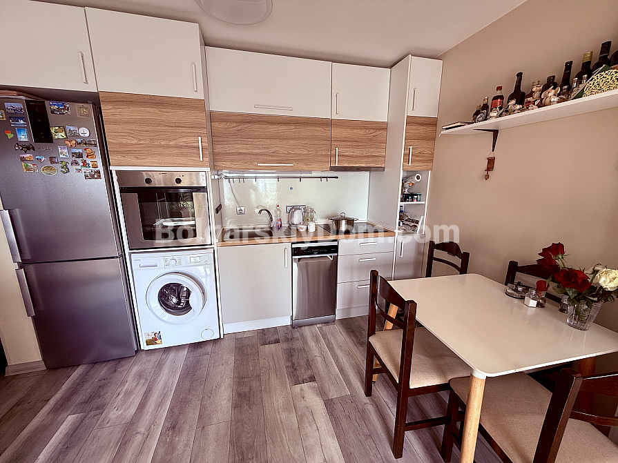 Nowa, korzystna oferta już w katalogu! Oszczędzaj na rocznych kosztach: w kompleksie Orange 3 w Sveti Vlas pojawiło się dwupokojowe mieszkanie bez opłaty serwisowej. Nieruchomość o powierzchni 51 m² znajduje się na parterze. Układ obejmuje salon z aneksem kuchennym oraz oddzielną sypialnię. Do dyspozycji jest prywatne wyjście do przytulnego, zielonego dziedzińca z miejscem na grill. Okna wychodzą na stronę południową, a z tarasu roztacza się widok na morze. Całe wyposażenie pozostaje dla nowego właściciela, apartament jest gotowy do zamieszkania.