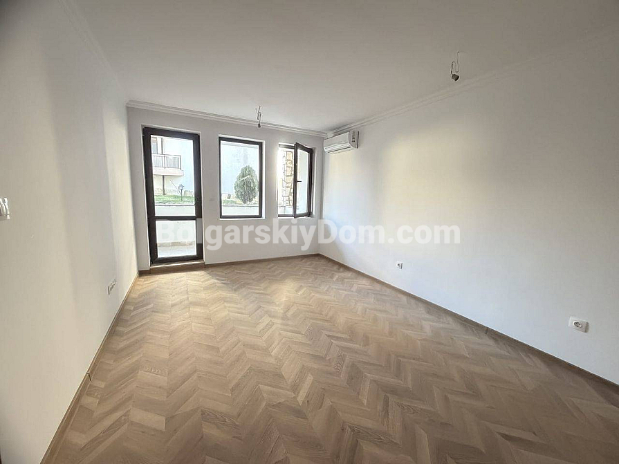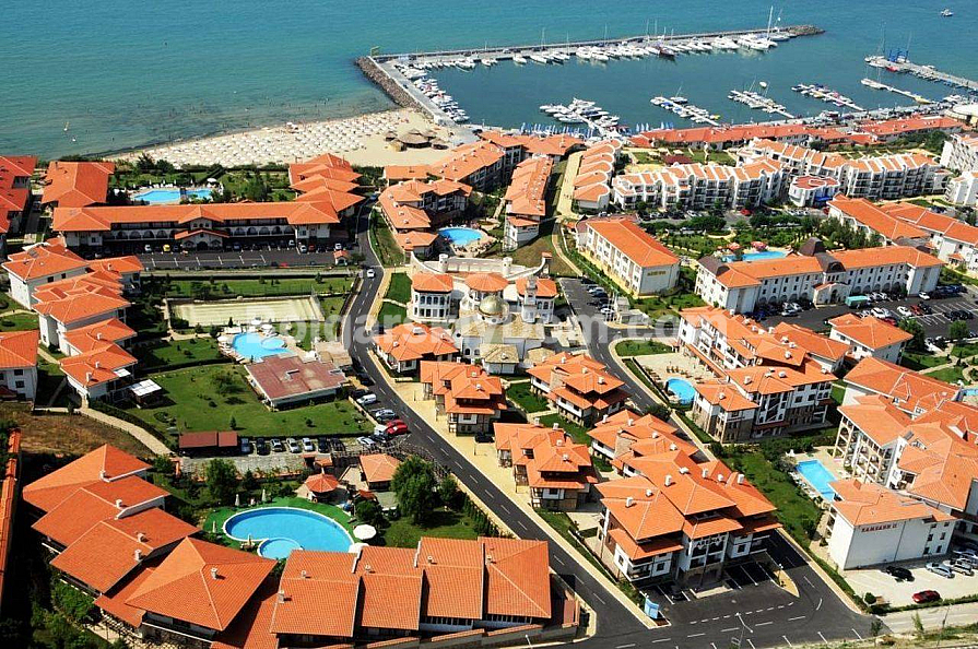 Prestiżowa nowość od Bolgarskiy Dom! Dwupokojowe mieszkanie w elitarnym nowym kompleksie Malkata Vodenitsa 2 od renomowanego dewelopera w topowej lokalizacji w Sveti Vlas. Nieruchomość znajduje się na parterze i posiada przestronny balkon z widokiem na zadbany teren kompleksu oraz okolicę. Powierzchnia wynosi 61 m² i obejmuje wygodny układ: jasny salon, oddzielną sypialnię, nowoczesną łazienkę oraz przestronny przedpokój. Mieszkanie jest wykończone pod klucz z wysokiej jakości remontem, zainstalowana jest klimatyzacja i bojler, łazienka jest w pełni wyposażona – pozostaje tylko dobrać meble według własnego gustu i cieszyć się życiem naprzeciwko mariny jachtowej Dinevi!