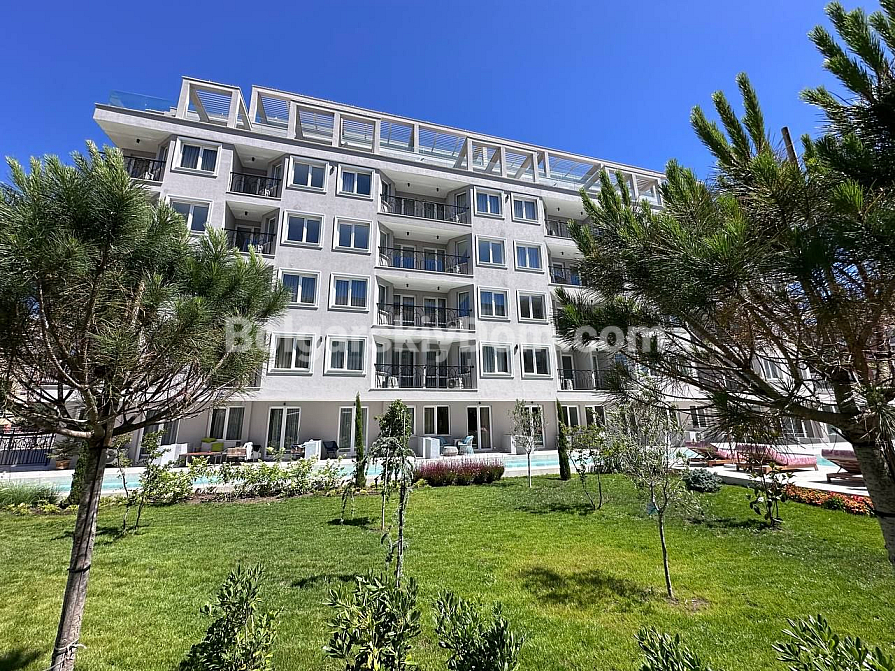 Premiumowa nieruchomość nad morzem od Bolgarskiy Dom! Stylowe dwupokojowe mieszkanie w nowym kompleksie J’Adore Secret Garden w południowej części Słonecznego Brzegu, w rejonie Cacao Beach. Nieruchomość znajduje się na 4. piętrze siedmiopiętrowego budynku z windą, oddanego do użytku w 2025 roku (uzyskano Akt 16). Powierzchnia wynosi 61,55 m² (powierzchnia mieszkalna 51,14 m²) i obejmuje nowoczesny układ: przestronny salon z zintegrowaną strefą kuchenną, oddzielną sypialnię, w pełni wyposażoną łazienkę (wanna/prysznic, umywalka, toaleta) oraz balkon/taras z widokiem na basen kompleksu. Ekspozycja południowa. Mieszkanie wykończone pod klucz, posiada wszystko, co niezbędne do życia!