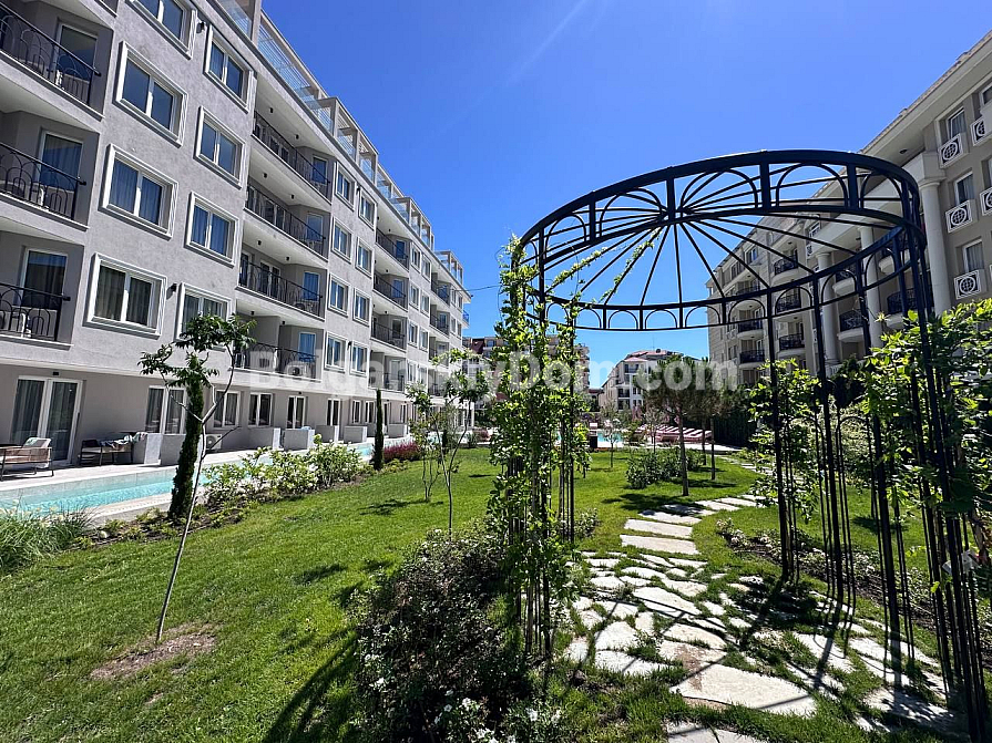 Kompleks J’Adore Secret Garden inspirowany jest Francuską Riwierą: zamknięty, zadbany teren z odkrytym basenem i strefą wypoczynku, lobby bar, centrum fitness, gabinet masażu, plac zabaw dla dzieci, tereny zielone, ścieżki spacerowe, restauracja/kawiarnia, minimarket, parking, całodobowa ochrona, monitoring oraz zarządzanie wynajmem. Odległość do szerokiej piaszczystej plaży wynosi 300–800 metrów. W odległości spaceru znajdują się popularne miejsca, takie jak Bedrum Beach i Zazu, a także supermarkety, restauracje, apteki i przystanki transportu — cała infrastruktura kurortu jest w pobliżu, a jednocześnie okolica pozostaje spokojna i prestiżowa. Roczna opłata za utrzymanie wynosi 18 euro za m² (wszystko w cenie: basen, ochrona, sprzątanie, utrzymanie).