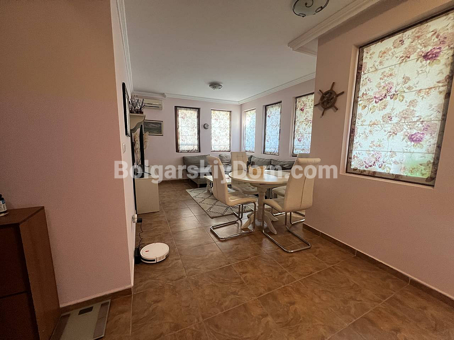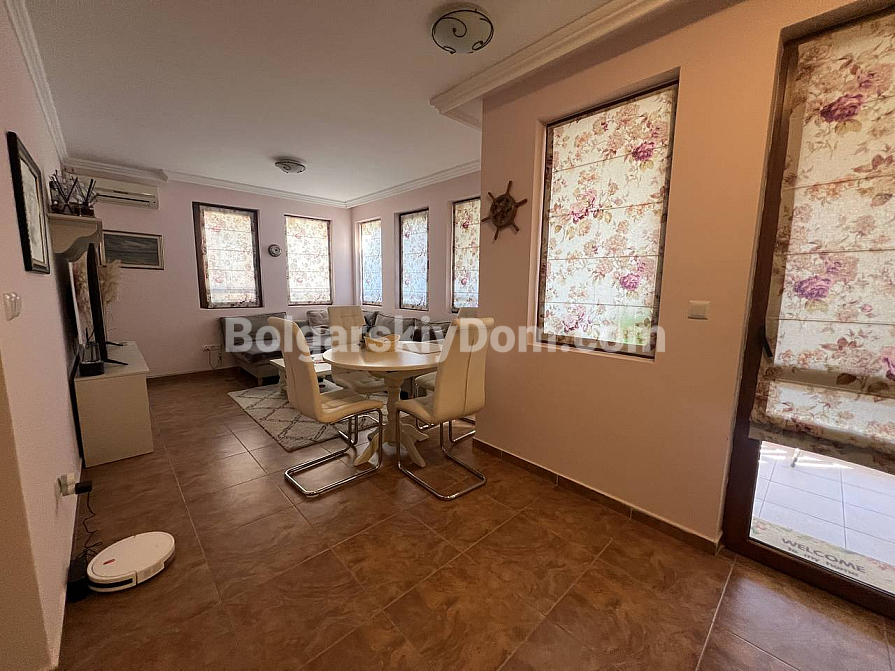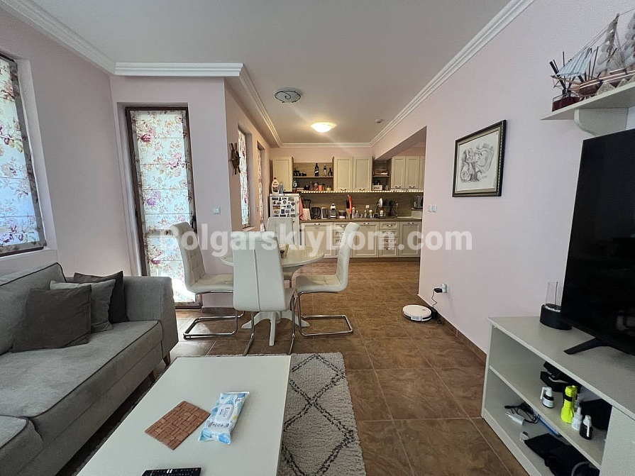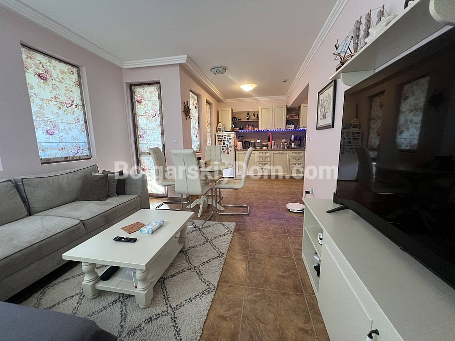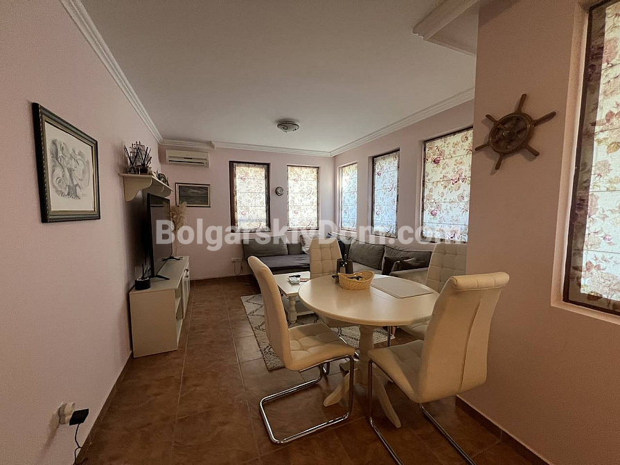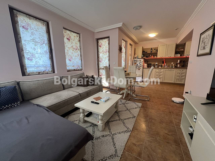 Elegancka i prestiżowa oferta od Bolgarskiy Dom! Przestronny apartament z jedną sypialnią w kompleksie Malkata Vodenitsa w dzielnicy Rusalka w Świętym Własie. Nieruchomość znajduje się na drugim piętrze pięciopiętrowego budynku z cegły z 2015 roku z windą. Całkowita powierzchnia wynosi 80 m² i obejmuje wygodny oraz jasny układ: salon z aneksem kuchennym, jedną oddzielną sypialnię, dwie łazienki oraz dwa tarasy. Wszystkie okna są skierowane na morze i miasto — z apartamentu rozciąga się wspaniały panoramiczny widok na Morze Czarne, jachty oraz okolicę. Apartament jest w pełni umeblowany stylowymi meblami, wyposażony we wszystkie niezbędne urządzenia i gotowy do całorocznego zamieszkania lub wynajmu!