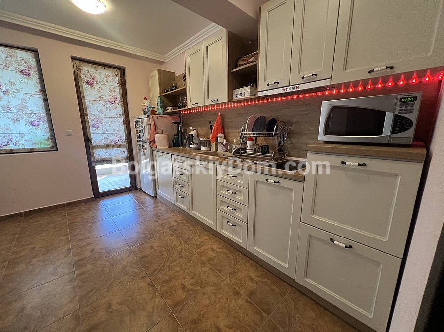 Kompleks Malkata Vodenitsa wyróżnia się unikalną architekturą w tradycyjnym bułgarskim stylu (naturalny kamień, drewno, czerwona dachówka), pięknie zagospodarowanymi ogrodami, alejkami spacerowymi oraz strefami wypoczynku. Infrastruktura jest na wysokim poziomie: nowoczesne baseny, cztery kluby fitness do różnych rodzajów treningu, amfiteatr (bezpłatne przedstawienia dla dzieci w niedzielne wieczory), ochrona 24/7, winda oraz ogrzewanie elektryczne. Kompleks znajduje się zaledwie 300 metrów od morza i słynnej przystani jachtowej Marina Dinevi — tylko 5–7 minut spacerem do plaży, promenady i mariny. W pobliżu znajduje się osiem supermarketów, salony piękności, kawiarnie, restauracje, sklepy i miejsca rozrywki — całe życie kurortu jest w zasięgu spaceru. Roczna opłata za utrzymanie — 12 euro za m² (wszystko w cenie: baseny, ochrona, sprzątanie, utrzymanie). Zapraszamy do kontaktu!