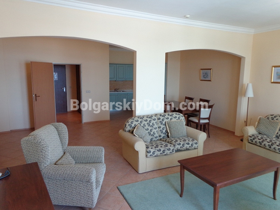 Говорят, что можно всю жизнь смотреть на четыре вещи: огонь, воду, землю и как кто-то работает. Мы хотим предложить вам способ продолжать радоваться жизни и наблюдать три эффекта из четырех постоянно, приобретя эксклюзивную квартиру в «Сансет Резорт». Предлагаемая квартира в комплексе №1 в Болгарии - не просто еще одна среди тысяч других, а квинтэссенция желаний всех людей, оформленная в квадратных метрах. Грамотная и просторная планировка с достойной и выдержанной в одном стиле мебелью удовлетворит изыски всех гурманов и стилистов, а один морской вид стоит половину. Человек, достигший финансовых высот и знающий себе цену, не сможет пролистать это предложение, не отметив и не рассмотрев его детально. Можно долго описывать достоинства комплекса, но если выразить это в одном предложении, то можно смело сказать.… Есть все!!! Фото говорят сами за себя!! И поверьте, в жизни это непередаваемо.