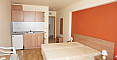 Оборудованная мебелью и техникой студия без балкона в комплексе «Афродита I». Она расположена на четвертом этаже здания комплекса (функционирует лифт). Просторная студия занимает общую площадь 35 кв.м. и направлена на восток.