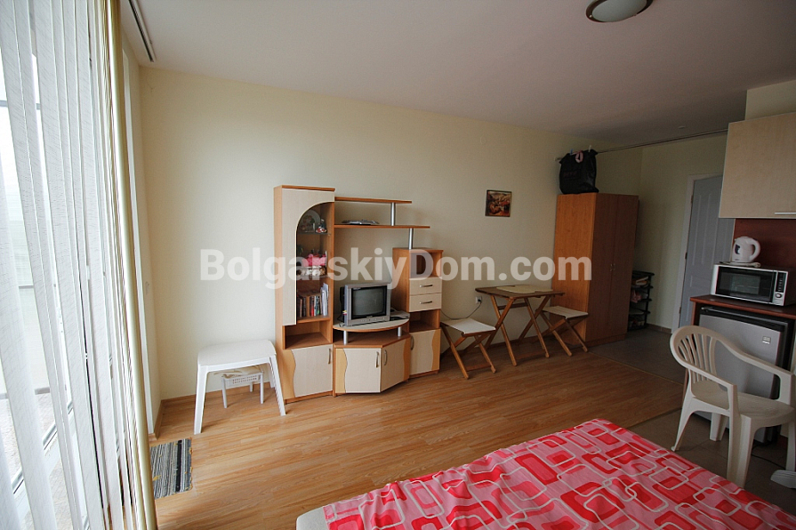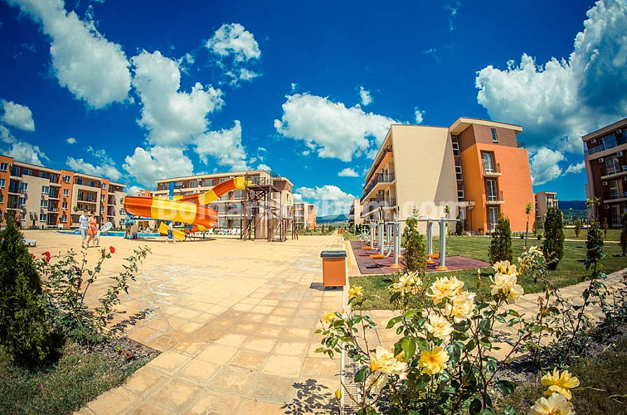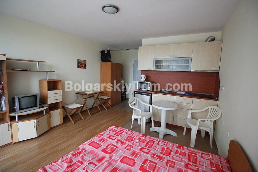Вашему вниманию предлагается классическая студия в известнейшем комплексе на Солнечном берегу "Холидей Форт Клуб". Комплекс известен в первую очередь своим качеством при незаурядной архитектуре, высоким уровнем обслуживания и огромной зеленой территорией, за которой смотрят множество садовников круглый год! Примечательным элементом комплекса является гольф поле, на которое можно смотреть прямо из окон студии наблюдая за захватывающей игрой. Сама студия меблирована добротной мебелью и всей бытовой техникой и готова встретить своего нового хозяина. Идеально подходит для сдачи в аренду, так как комплекс пользуется хорошей славой и популярен среди семейных пар! Географическое положение заслуживает еще большего внимания. Комплекс находится прямо напротив центра На первый взгляд может показаться что дома удалены от моря на 900 метров и это большое расстояние, но на самом деле попадая на территорию вы погружаетесь в свой закрытый мир и внешние раздражители больше не беспокоят вас, оставаясь за воротами комплекса. Поблизости городской супермаркет "ММ". Удобная парковка на большое количество парко мест!