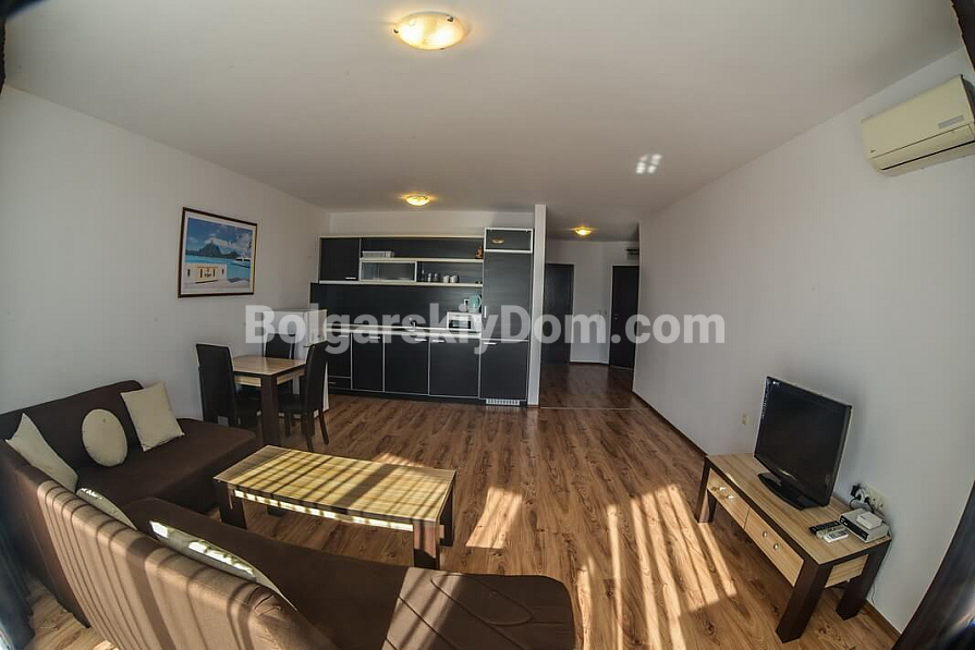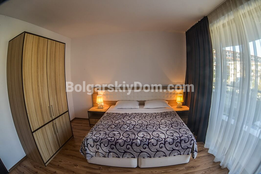 В Святом Власе продается стильная и современная двухкомнатная квартира с видом на Черное море и горы. Общая площадь – 90 кв. м., жилье располагается в апарт-отеле Миллениум и включает вместительную гостиную правильной формы с отдельным кухонным блоком и выходом на балкон, спальню, просторный санузел. Квартира меблирована и оснащена техникой, в каждом помещении полы с подогревом. Показы проводятся без временных ограничений.