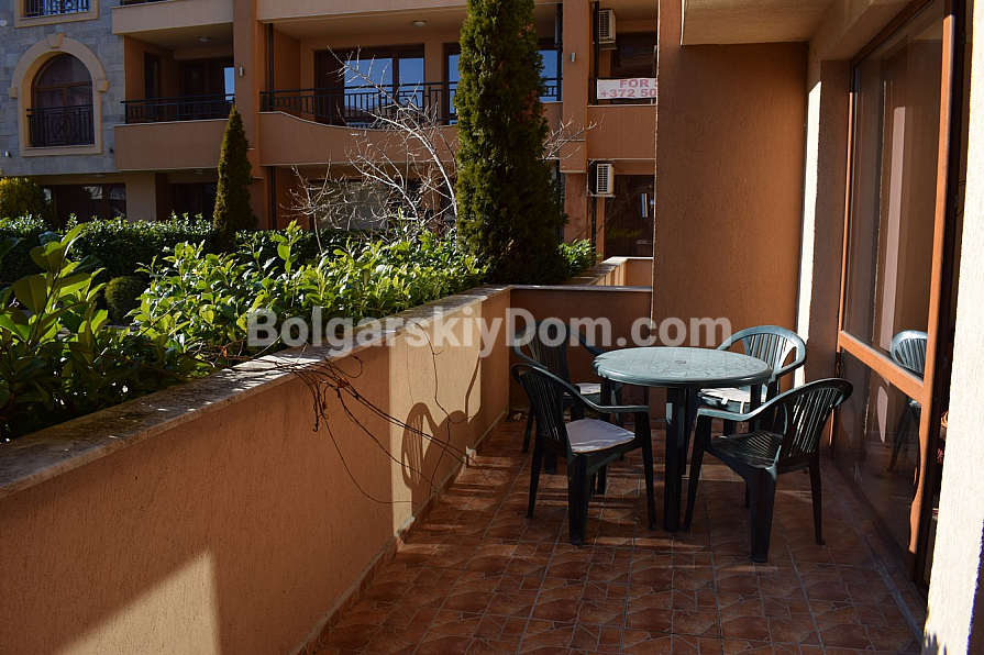 Отличное предложение от Болгарского Дома! В комплексе закрытого типа Пасифик 2, что возведен всего в 400 метрах от пляжа Солнечного берега, открыта продажа двухкомнатного апартамента площадью 74,75 кв. м. Квартира на первом этаже, полностью оборудована техникой и меблирована – готова к заселению или сдаче в аренду. Из окон открывается вид на большой плавательный бассейн. Возможно отопление при помощи кондиционера.