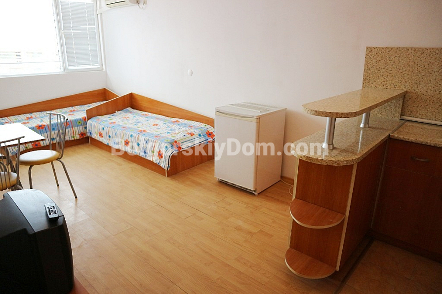 Курортный апартотель Шумен построен в топовом и очень удобном квартале Солнечного берега – Чайка. Собственникам недвижимости необходимо преодолеть всего шестьсот метров до пляжной линии, рядом расположен супермаркет ММ, а также разнообразные заведения питания, овощные рынки, бытовые магазины и банки. Район отлично подходит для постоянного проживания, на территории комплекса есть современная детская площадка, вход для посторонних закрыт. Отель Шумен подходит для круглогодичного проживания, взимается низкая такса коммунальной поддержки.