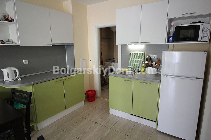 Шикарная новинка в АН Болгарский Дом – абсолютный эксклюзив этого сезона! В курортном отеле Балкан Бриз 7 поступила в продажу квартира с двумя спальнями, площадь которой составляет 49 кв. м. Преимущество апартамента в том, что большая терраса не включена в общую площадь, также нет общих частей и парадного, такса поддержки за данный апартамент – минимальная. Недвижимость находится на первом этаже и продается в состоянии под ключ. Сделан качественный ремонт, приобретена дорогостоящая и стильная мебель, есть вся техника.