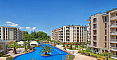 Десятая фаза курортного отеля Каскадас 10 находится чуть меньше, чем в километре от морского побережья. Один из проектов знаменитой на болгарском побережье сети, этот отель построен через дорогу от большой парковой зоны с террасами, зелеными локациями для отдыха и прогулок. На территории есть четыре детские площадки, несколько искусственных озер, бассейны с пулл-барами, супермаркет, итальянский ресторан, салон красоты и фитнес-центры. Также гостей ждет СПА-салон, небольшие аквапарки для детей и магазин с эко-продуктами.