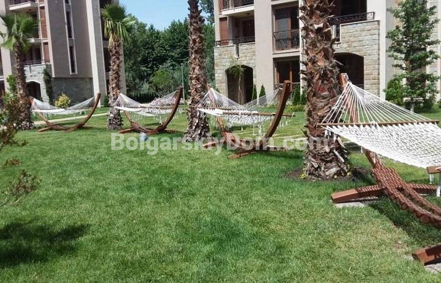 Очень интересное предложение– комфортабельная, уютная и готовая к заселению трехкомнатная квартира в Солнечном береге. Приятный и гармоничный дизайн всего пространства, площадь которого равна 69 кв. м. Недвижимость расположена на шестом этаже курортного комплекса Каскадас 10. Из окон открывается масштабный вид на внутренний двор отеля и окрестности, простирающиеся за ним. Владельцы недвижимости осуществляют сделку под ключ – благоустройство остается покупателям, оно входит в цену.