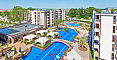 Курортный комплекс Каскадас состоит из нескольких небольших зданий, и уникален масштабом территории – более 45 кв. км. Пользуется огромным спросом у туристов и имеет высокие рейтинги на всех сайтах аренды. Парковые зоны, бассейны с водными горками и аквапарками, детские площадки и искусственные озера, локации для отдыха с шезлонгами и террасами, несколько СПА-центров, салон красоты, ресторан с итальянским меню, а также супермаркет и эко-лавка с продуктами – инфраструктура в Каскадас поистине эталонная. До моря от отеля – около 800 метров, или десять минут неспешной ходьбы.