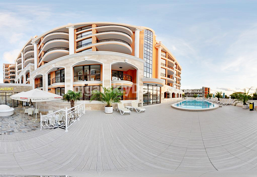 Новое предложение в каталоге компании Болгарский Дом! В курортном отеле Адмирал продается уютная, с грамотно реализованным и стильным дизайном двухкомнатная квартира с морской панорамой из окон и красивого балкона-террасы! Апартамент находится на шестом этаже, в его стоимость входит бытовая, цифровая техника, а также люксовая мебель, выполненная на заказ! Новым владельцам остается все благоустройство, включая детали интерьера. Общая площадь составляет 79 кв. м.