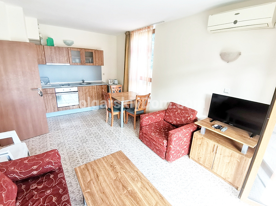 Двухкомнатная квартира в Солнечном береге! В Роял Дримс продается уютный, комфортабельный апартамент на первом этаже. Он с классическим дизайном интерьера, а на площади в 54 кв. м. есть просторная гостиная с выделенной кухней, уютная спальня, прихожая и санузел. Есть выход на открытую террасу, ведущую во двор.