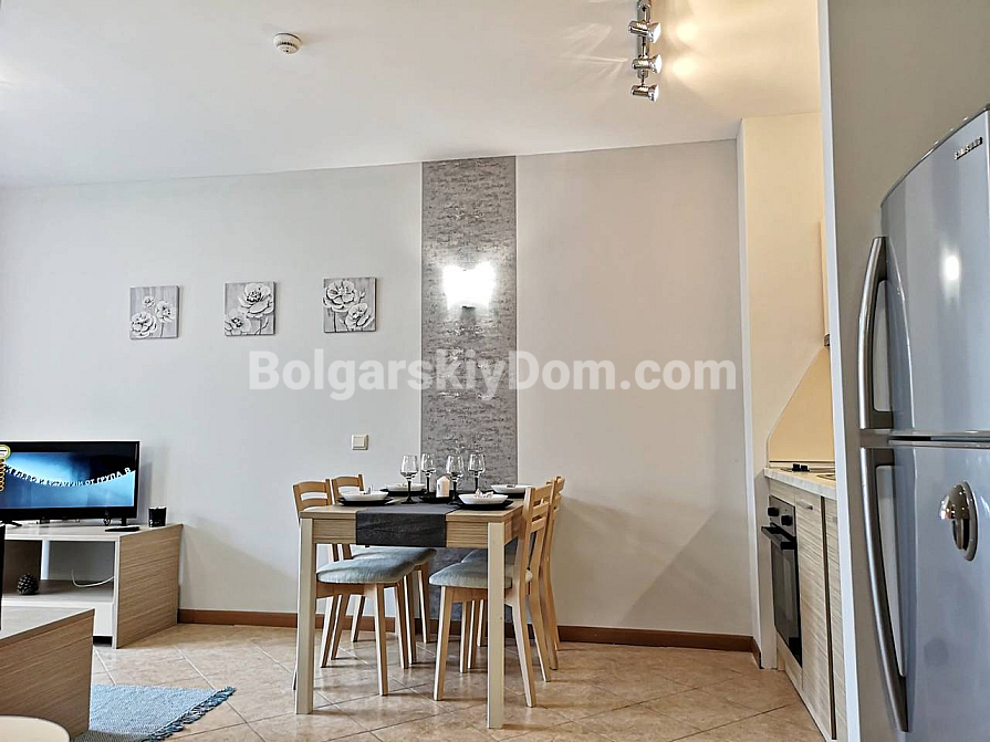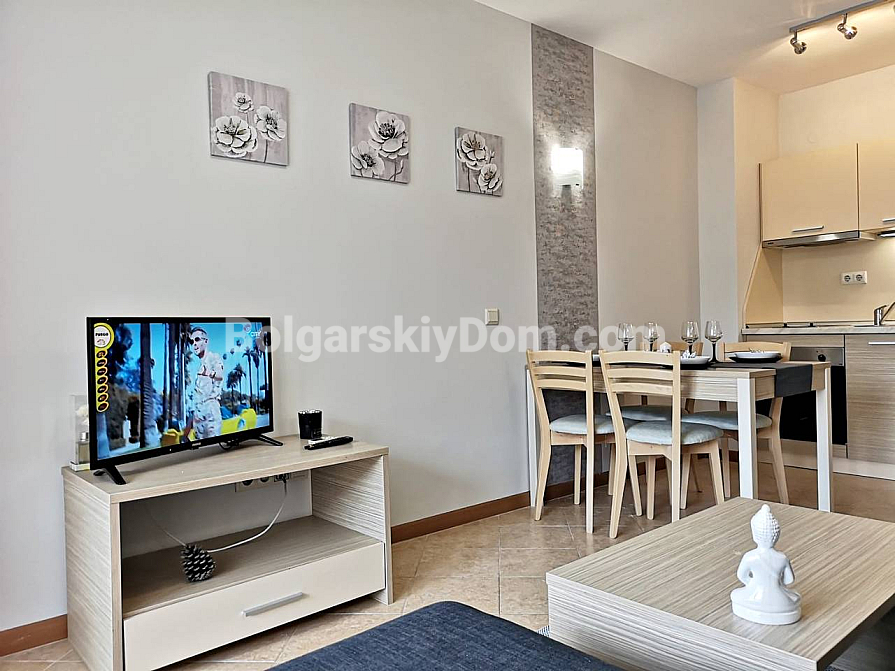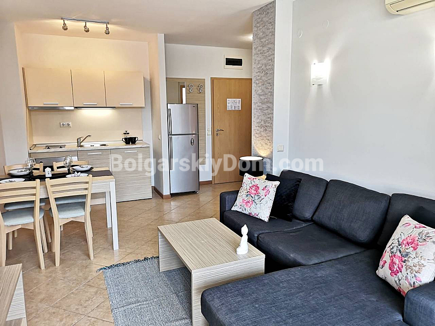Компания Болгарский Дом с удовольствием представляет вам новинку в центре Солнечного берега – двухкомнатную квартиру в Роял Сан. Апартамент – стильный, уютный и прекрасно укомплектованный – находится на втором этаже апарт-комплекса. Площадь – 61 кв. м., сделка проводится под ключ.