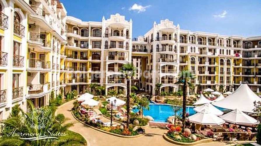 Хармони Сьюитс – элегантный, стильный и ориентированный на всеобъемлющий комфорт жильцов комплекс, построенный в шестистах метрах от моря. Он состоит из пяти корпусов, которые объединены просторной и обустроенной с учетом всех потребностей жильцов территорией. Красивый парк с детскими площадками, бассейны, ресторан, фитнес-центр и многое другое. Инфраструктура соседних комплексов открыта к использованию.