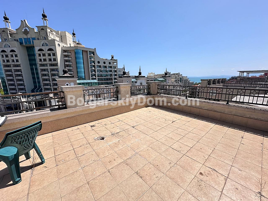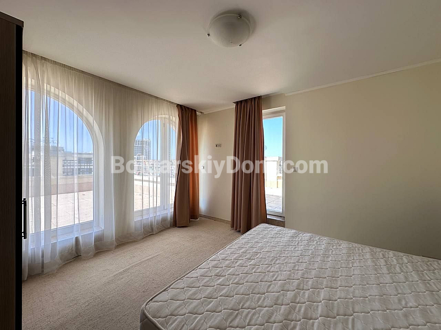 na piątym piętrze LCD Sunset Resort-nowość bieżącego sezonu! Trzypokojowe mieszkanie o metrażu 261 m. kw. z dwiema łazienkami, przyjemnym klasycznym wyposażeniem wnętrz i dużym tarasem, którego przestrzeń można zorganizować w dowolny sposób: grill, leżaki, namiot, gra, suszenie bielizny i tak dalej. Dobry układ z oddzielnymi sypialniami i przedpokojem.
